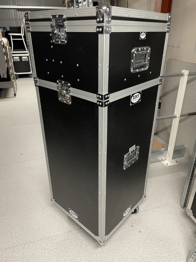 Deze kist is voorzien van een bovenkist, waar ruimte is om microfoons, klemmen ed op te bergen.